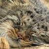 Description: he is loafing with a neutral expression, which still looks pretty grumpy.